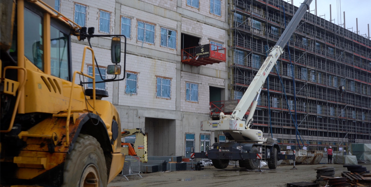 Na placu budowy każdego dnia pracuje około 400 osób. W środku montowane są już instalacje elektryczne, kanalizacja sanitarna i media.